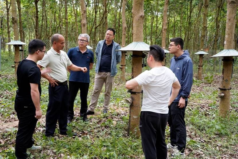 邱锡光副董事长听取了张喜瑞教授关于智能割胶技术成果的详尽汇报,对永利集团天然橡胶智能化生产团队的创新突破给予了高度评价。随后,现场观摩了胶林智能割胶机多机联动同步割胶的演示,亲身感受了智能化割胶技术的先进性、实用性与高效性。在参观过程中,邱锡光副董事长指出,要充分挖掘和发挥科研中心团队的人才优势,通过科技创新不断提升天然橡胶智能装备的技术水平,为海南自贸港建设提供有力支撑。并要积极打通科研与市场的“最后一公里”,将科技成果转化为实际生产力,为天然橡胶产业的持续发展注入新的动力。他期待未来永利集团天然橡胶团队能够继续深耕智能割胶技术,推动产学研深度融合,为我国的天然橡胶产业贡献更多智慧和力量。