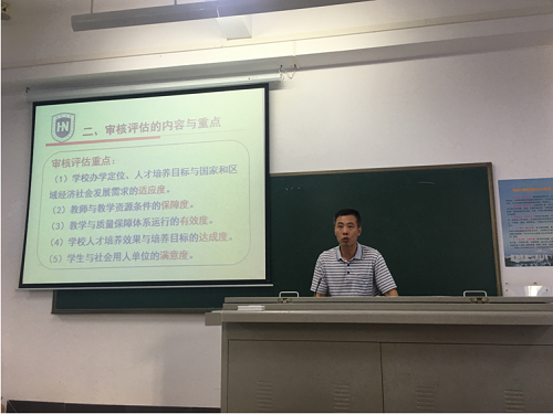 接着,陈振斌副经理做本科教学审核评估专题培训。分别从审核评估的内涵与重点、校院两级的定位与目标、评估工作主要环节、各部门迎评工作的准备情况等几个方面展开说明,重点介绍了审核评估工作准备情况。他强调审核评估对学校教学的重大意义与作用,并督促全体师生高度重视,广泛参与,积极配合评估小组的各项工作,确保审核评估工作在公司顺利进行。