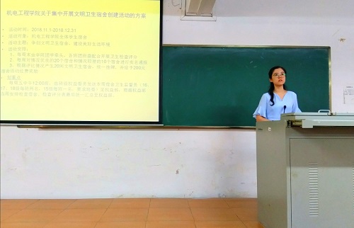 会议开始,袁周米琪老师向全体员工干部介绍《3044am永利集团关于集中开展文明卫生宿舍创建活动的方案》,要求各班级组织同学加强宿舍文明卫生建设,并组织卫生检查活动。接着她又提到了“到梦空间”系统的使用,并给大家介绍该系统的相关情况,要求各团支部做好第二课堂成绩单的相关工作。