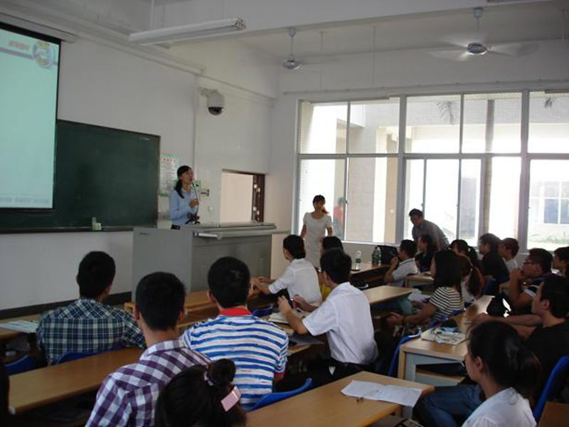 会上先由招聘主任董晓飞播放了金盘电气公司宣传片并对关于我们进行了详细的介绍,而后由人力资源部经理林瑜对公司发展进行了规划报告,接下来由人力资源部总监万总一一回答了同学们的提问。整个教室中座无虚席,宣讲会上同学们全神贯注了解公司的基本情况、薪资待遇、发展空间,并积极地参与相关讨论,整个会场中气氛热烈。最后,公司还安排同学们参加了第一轮笔试。